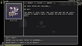 A continuation of my Superfluous series of games. This takes place after the events of my second game, "Sand: a Superfluous Game". As one of the many clones E.D.I.E. created, you are launched into space and crash on an asteroid. Luckily, she remembered to put you into a spacesuit this time. Armed with a drill and a dream, you turn the rock into a livable ship(?).